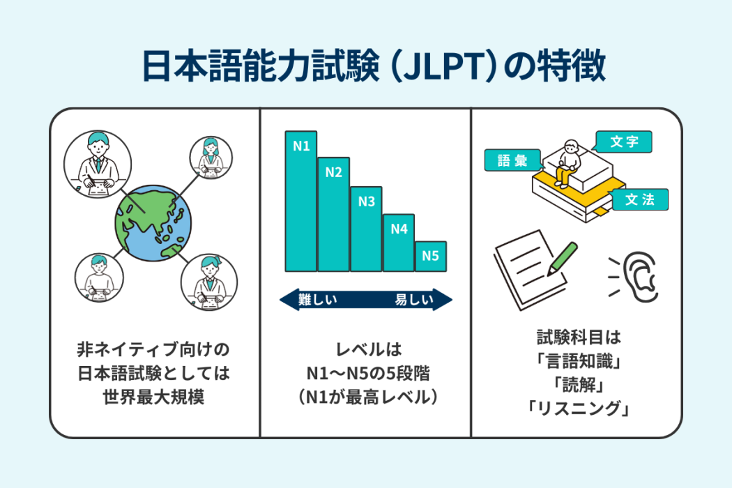 日本語能力試験(JLPT)には、以下の4つの特徴があります。